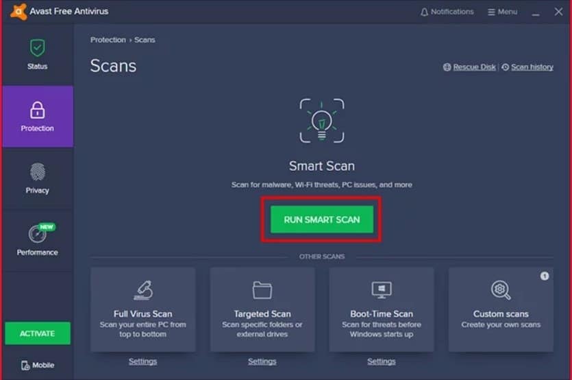 Virüs taraması yaparak api-ms-win-crt-runtime-l1-1-0.dll hatasını çözme: