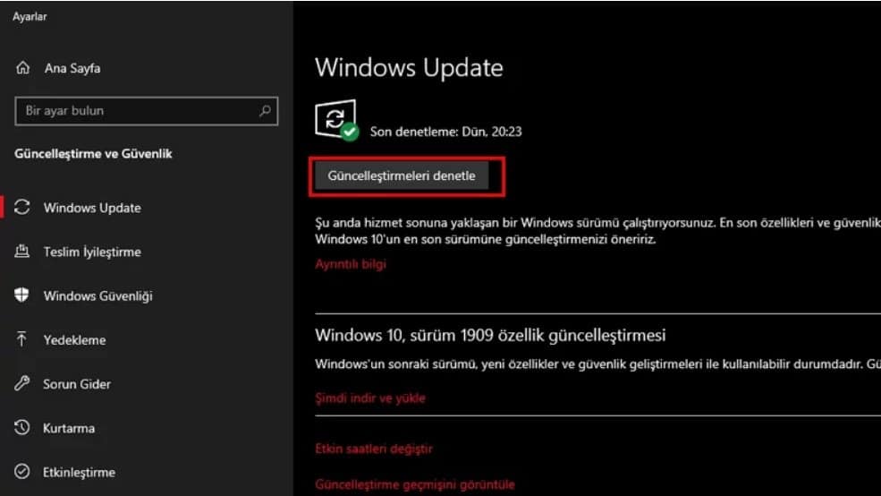 Güncelleme yaparak api-ms-win-crt-runtime-l1-1-0.dll hatasını çözme:
