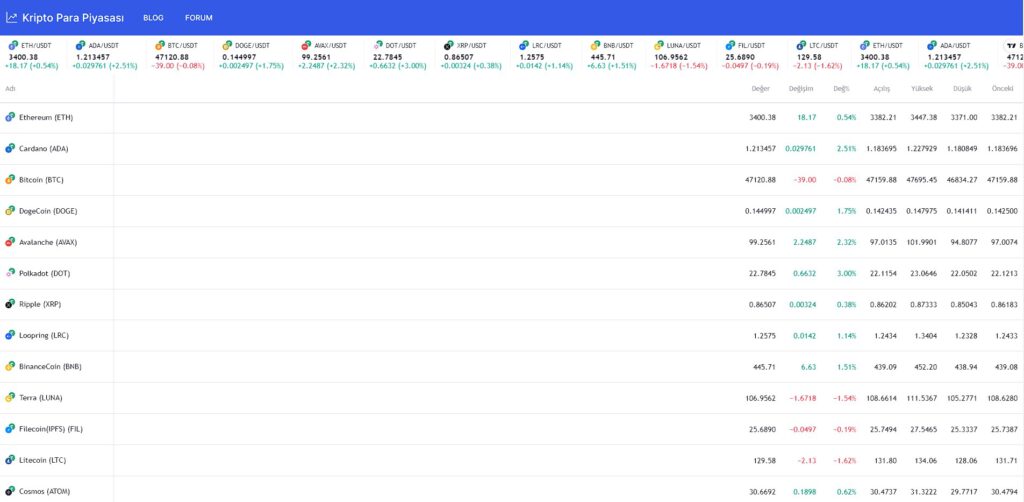 Konumuzun devamında tanıtacağım sayfamız güncel ve en çok takip edilen coinlerden kripto paralardan oluşmakta. İstekleriniz değerlendirilir ve buna göre güncellemede yapabilme şansıız mevcut.