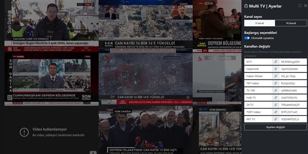 Dilerseniz ekranın hemen sağ tarafındaki ayarlar simgesine tıklayarak 9 olan görüntüyü 16 haber kanalına çevirebilirsiniz.