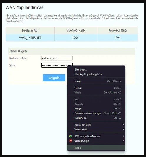 Burada birkaç işlem yapacağız. Şifreye sağ tıklayıp incele yapalım.