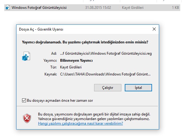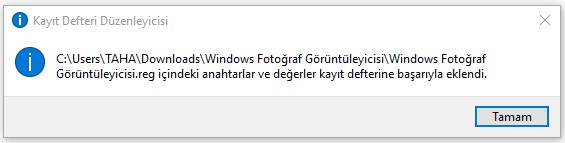 BURADAN => Windows10 Fotoğraf Görüntüleyici Etkinleştirme